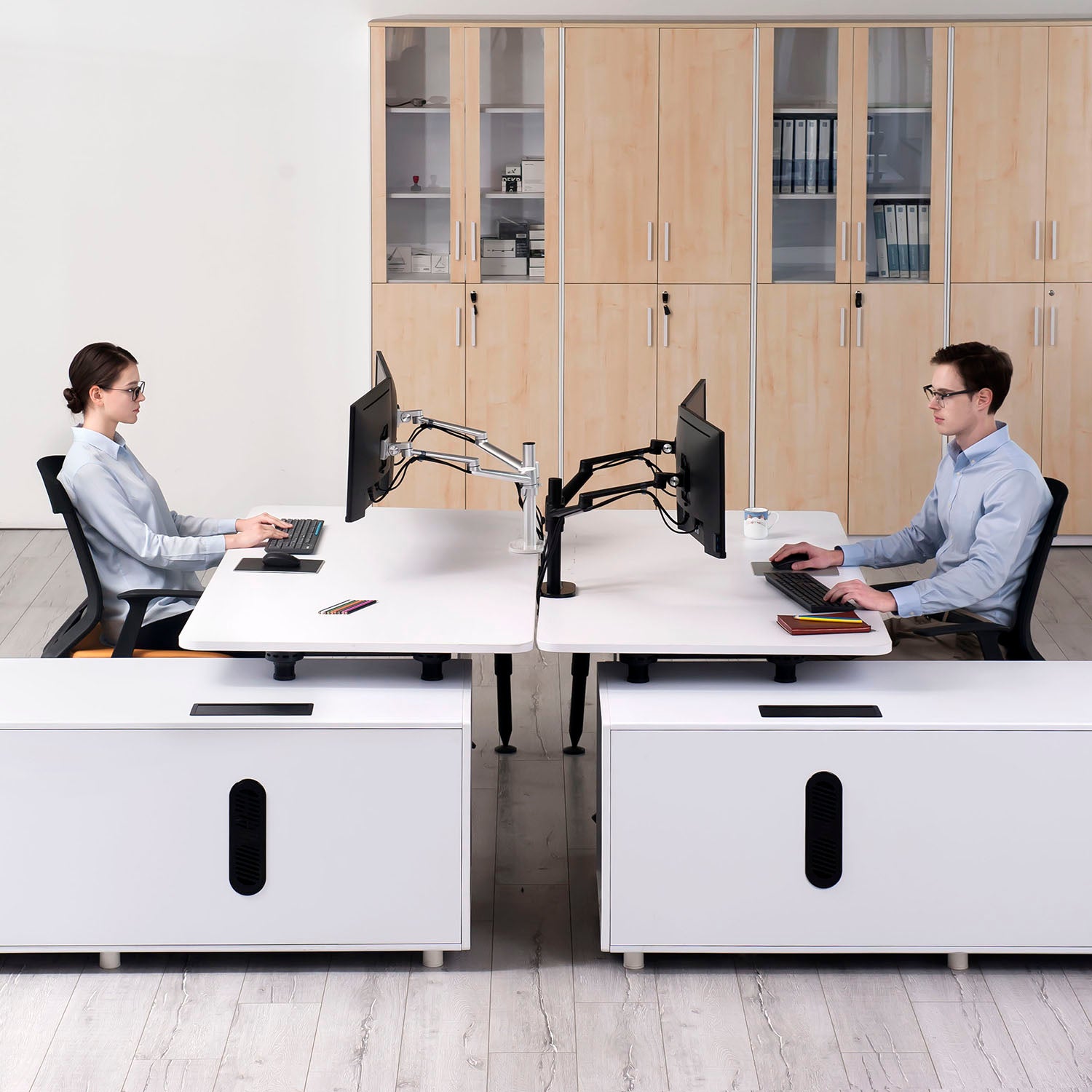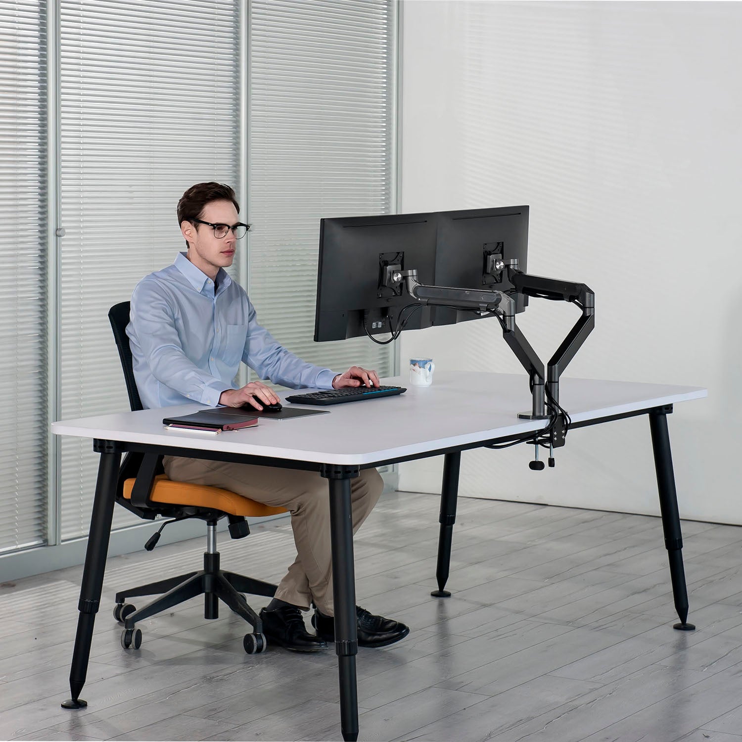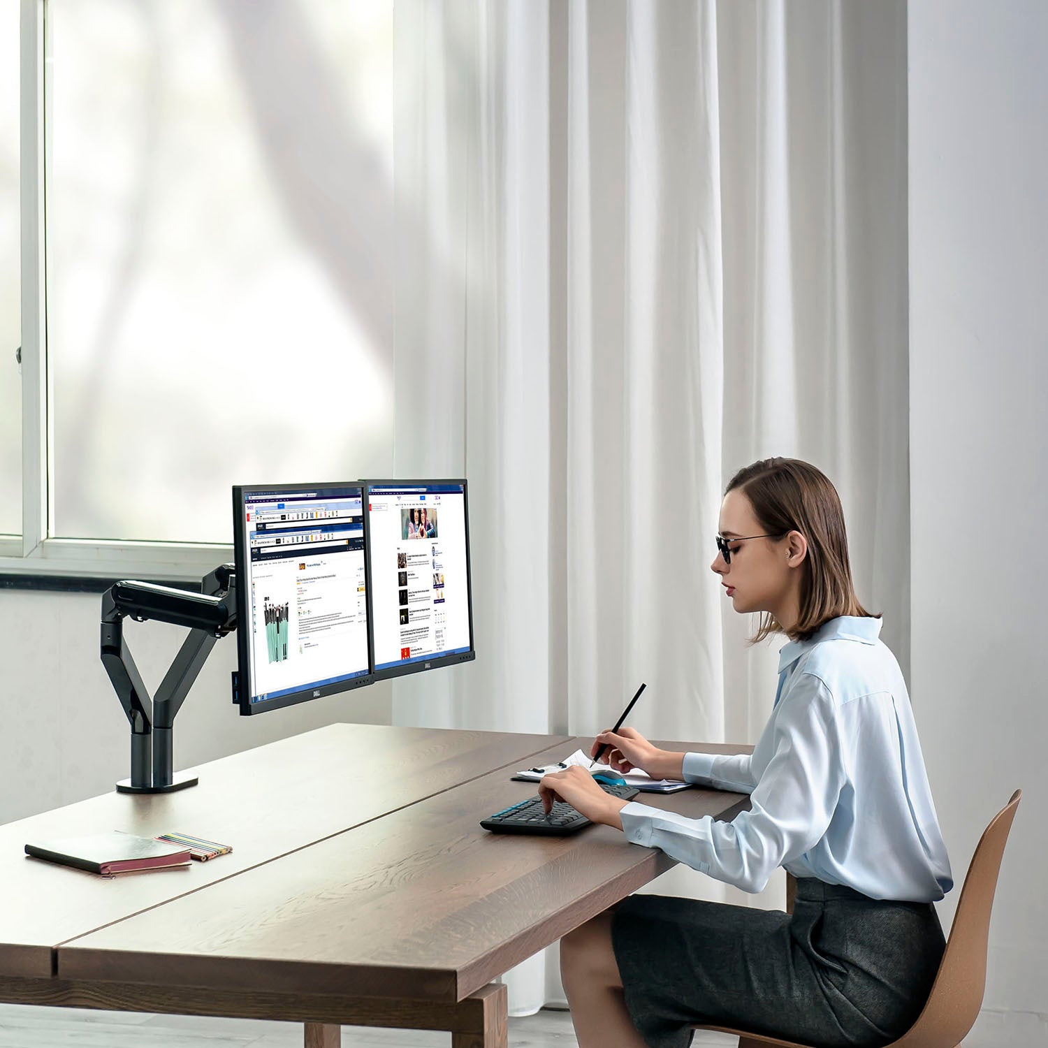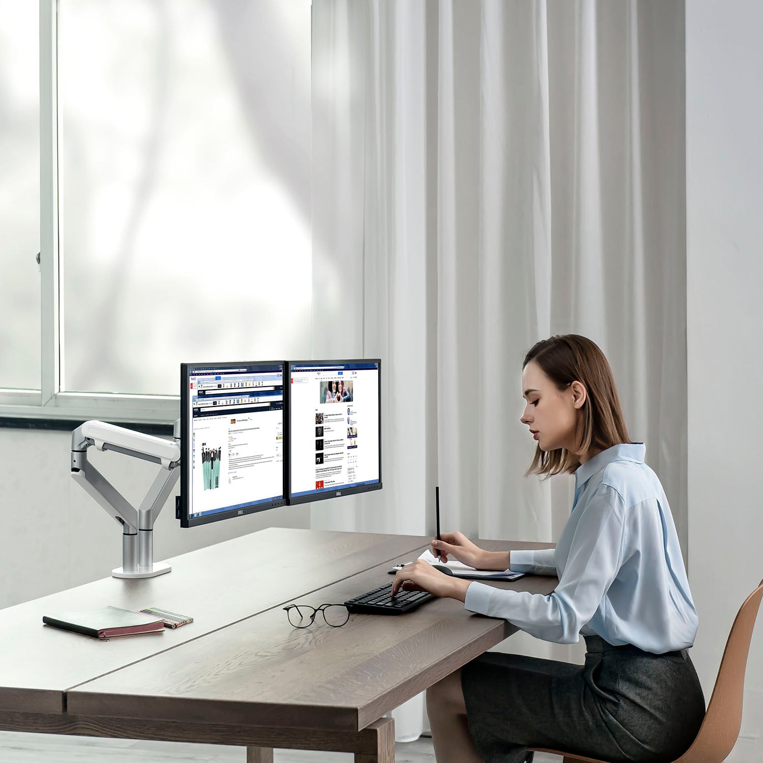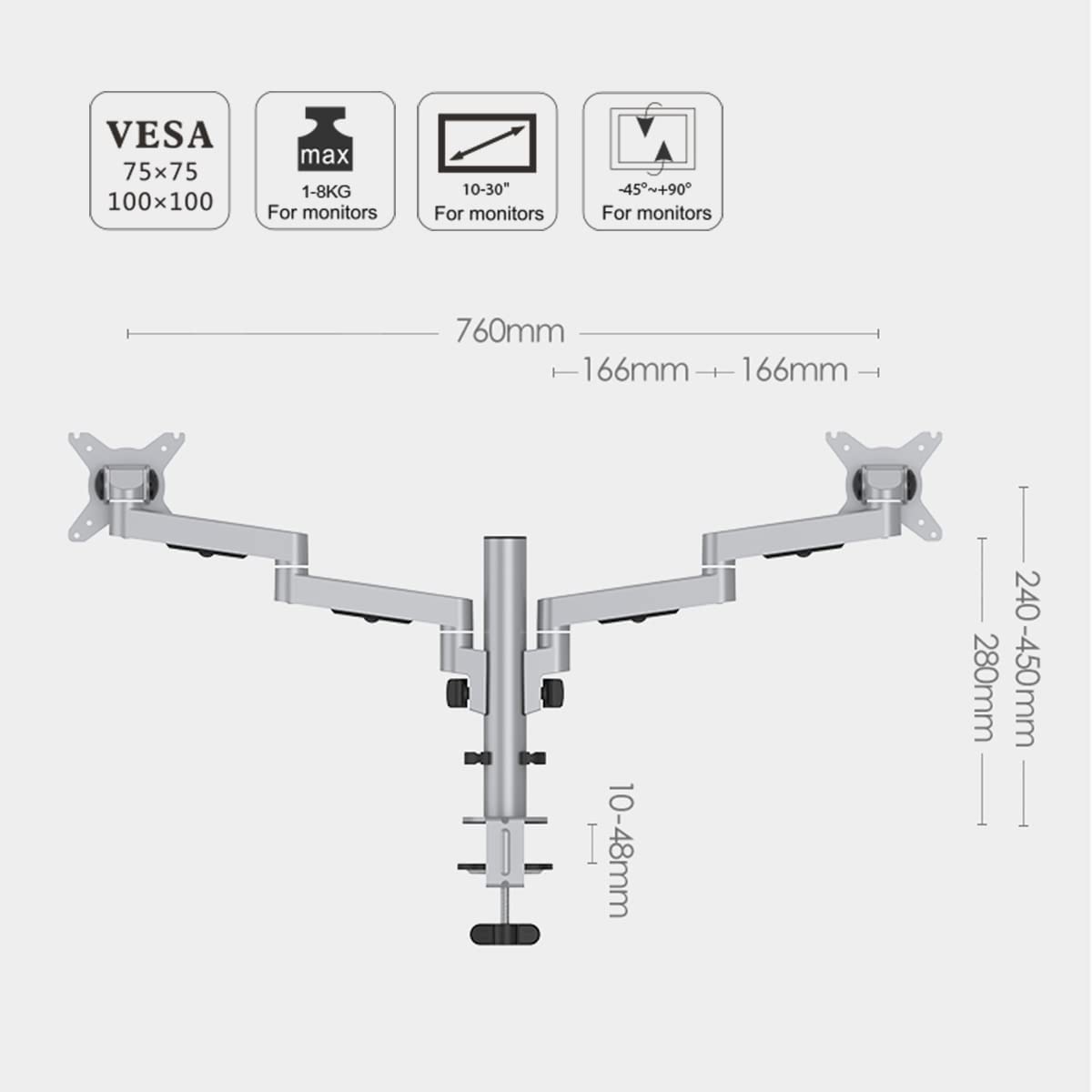 The ThingyClub dual arm monitor mount Dual Monitor Desk Mount allows you to clear out your desk space, while providing ergonomic monitor installation height. Economical and dependable, mechanical monitor arms allow...