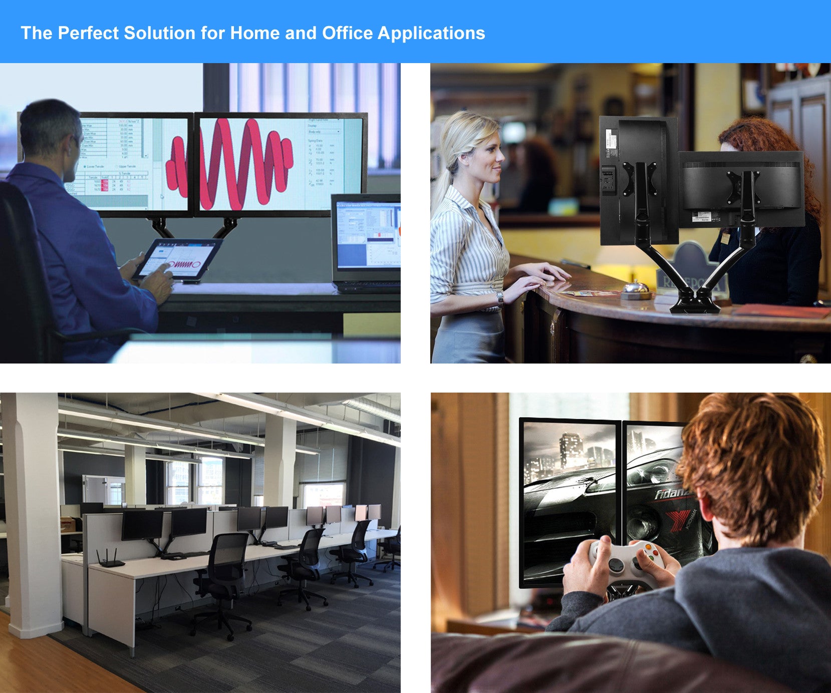 The Thingyclub Adjustable Dual Monitor Mount can dramatically increase work surface area, workstation performance and user comfort. The ability to extend or collapse the monitor provides a much larger functional area for non-computer related work. A monitor that can be stowed away when not in use is rapidly becoming an essential space saving requirement.
