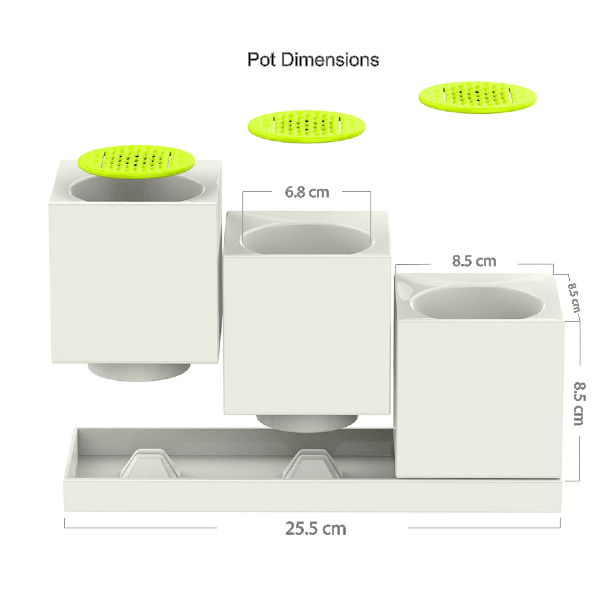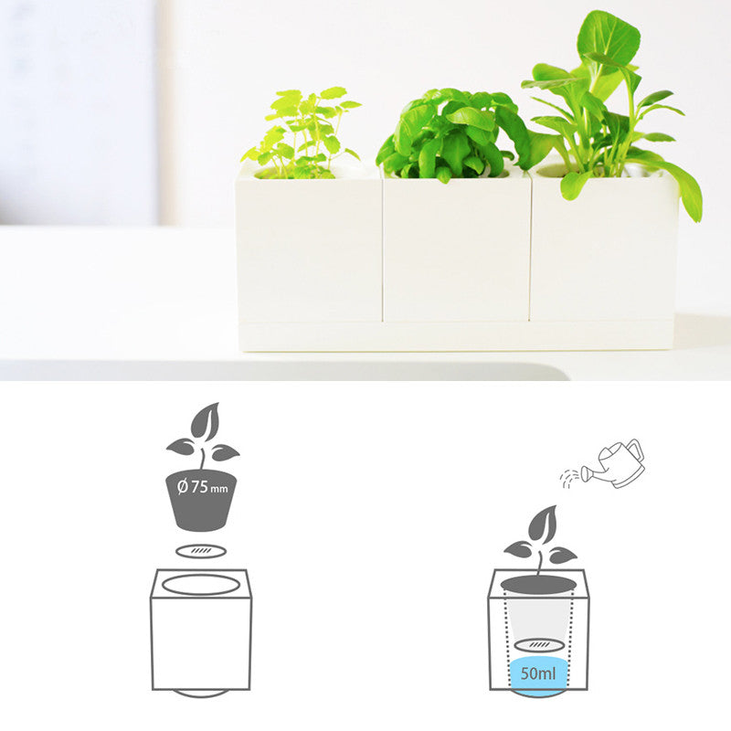 Package includes: 1×Tray(255*18*85mm). 3× Self Watering Pot(85*85*85mm, Pot Dia: 6.8cm)