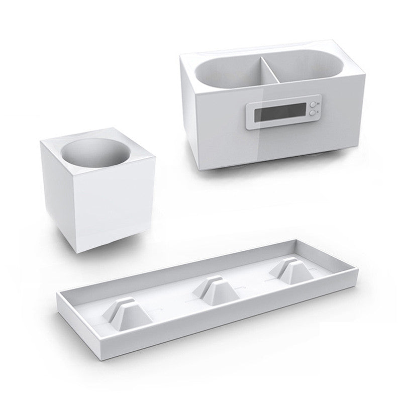 Package includes: 1×Tray(255*18*85mm). 1× Self Watering Pot(85*85*85mm). 1× Mini Power Plant Clock (170*85*85mm)