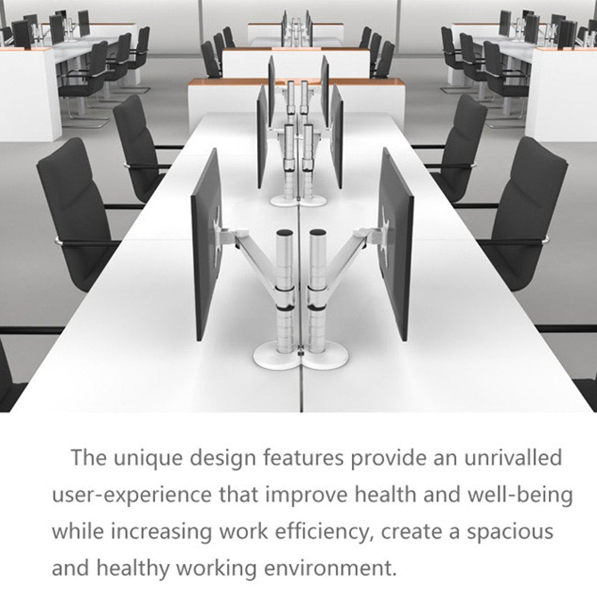 The perfect solution for both home and office applications, helping to reduce eye, neck and back strain. It mounts easily to the desk via either a desk clamp or bolt through desk mount / grommet. The grommet fits neatly through the cable management hole reducing the need for additional drilling. Via its screw clamp, the desk bracket can be attached to surfaces with a thickness from 1 to 5.5cm.