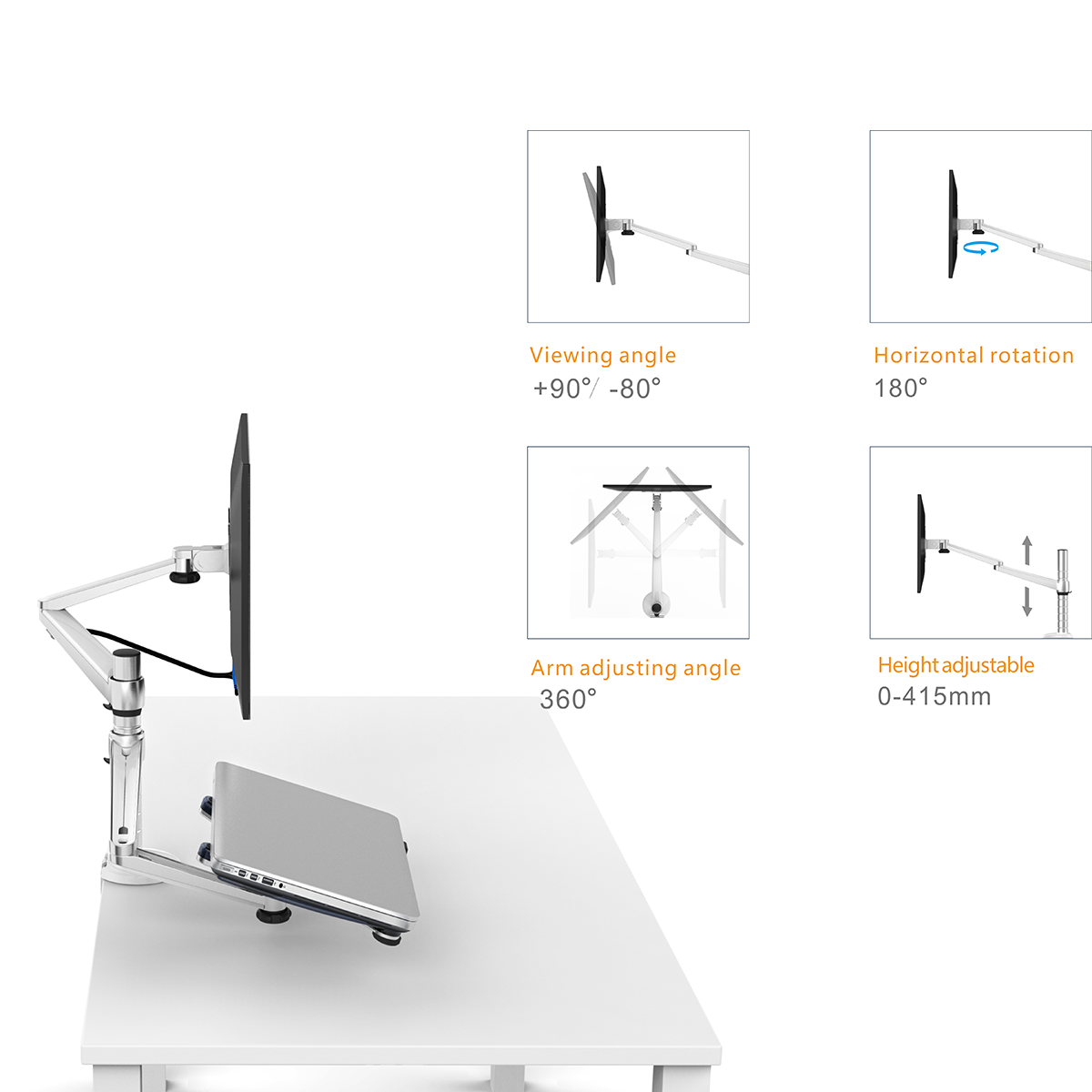 It offers up to 400mm of height adjustment for monitor and 330mm of height adjustment for laptop and both up to 420mm of reach, perfect for meeting the ergonomic needs of 95% of adults.